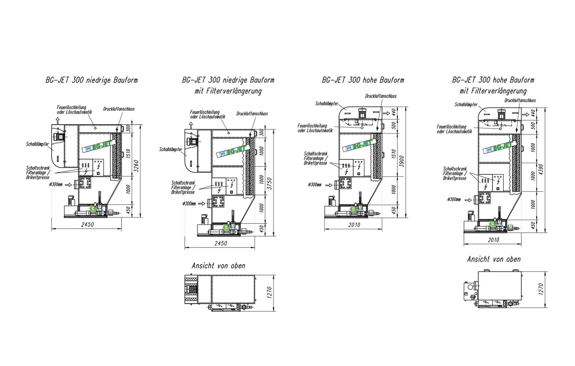 | Anschlussstutzen Absaugrohr | d=300 mm | d=300 mm | d=300 mm | d=300 mm |
