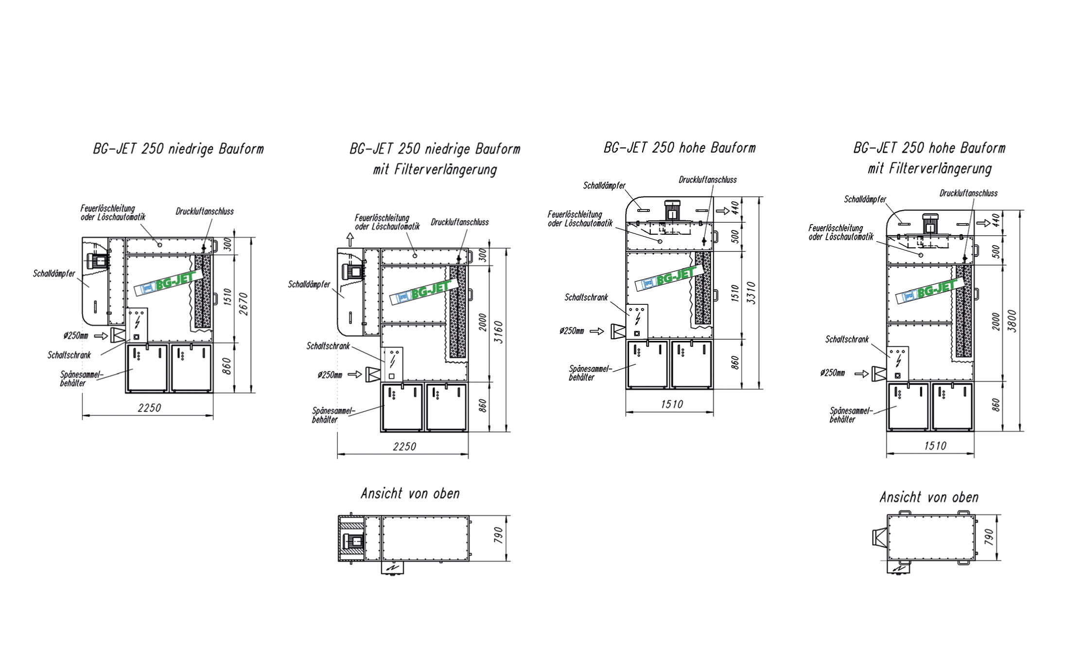 | Anschlussstutzen Absaugrohr | d=250 mm | d=250 mm | d=250 mm | d=250 mm |