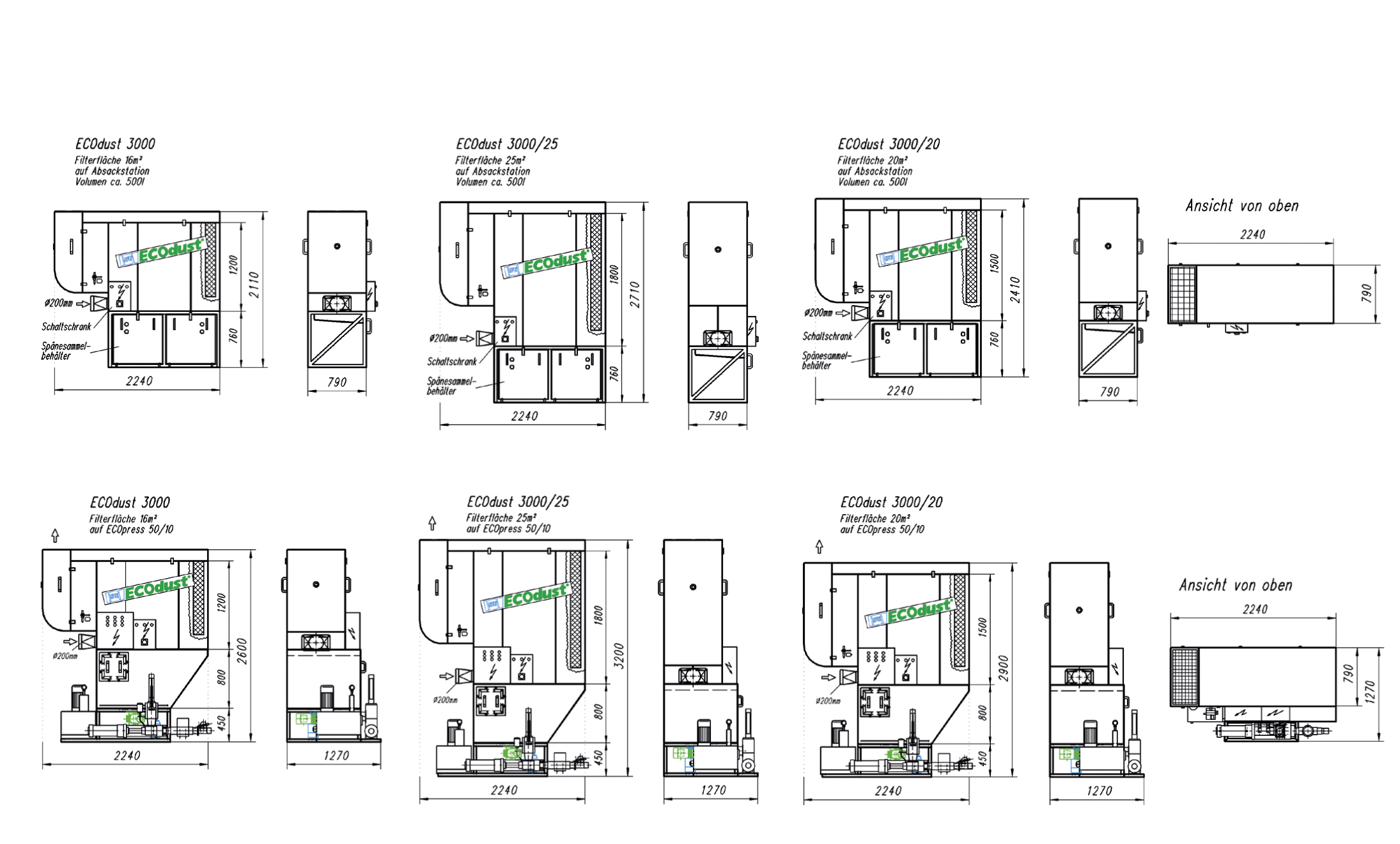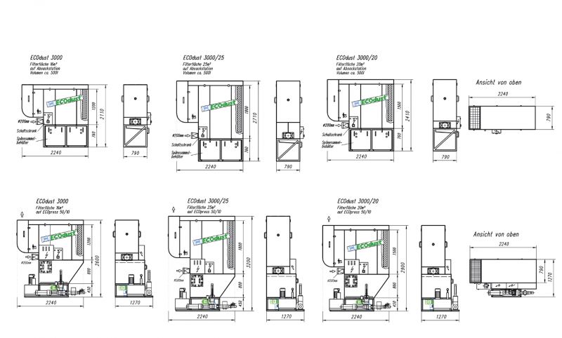 | Anschlussstutzen Absaugroher d = mm | 200 mm | 200 mm | 200 mm | 200 mm | 200 mm | 200 mm |