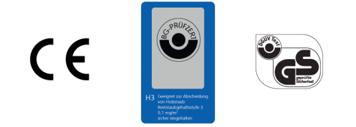 - BG-geprüftes Filtermaterial (Abscheidegrad 99,95%)