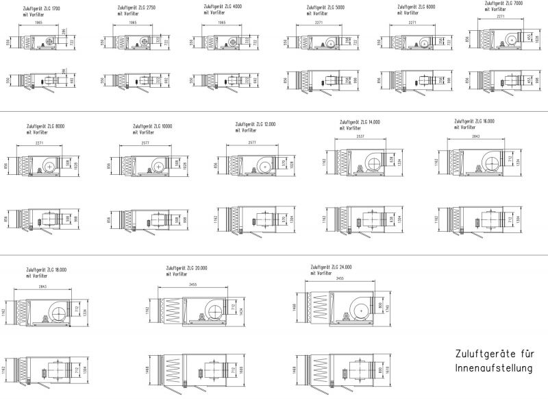 | Luftleistung (m³/h) | 10.000 | 12.000 | 14.000 | 16.000 | 18.000 | 20.000 | 24.000 |